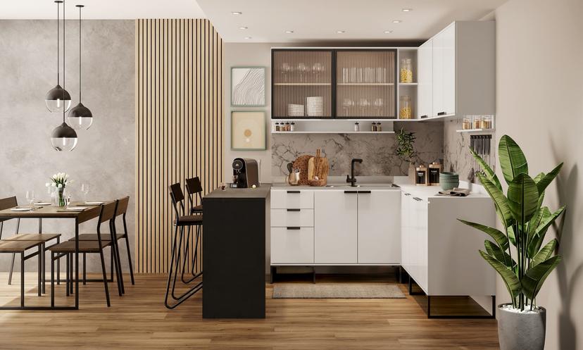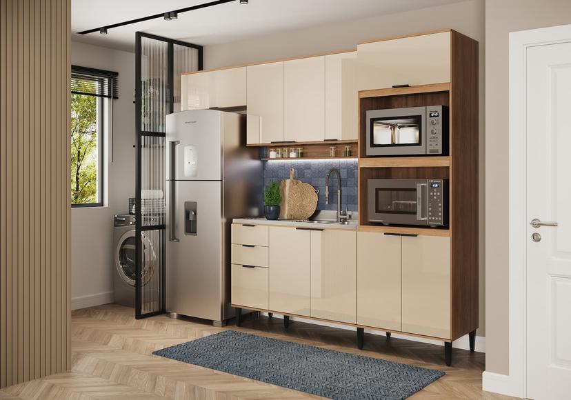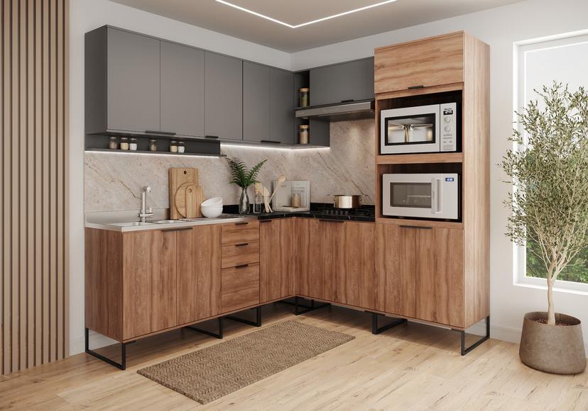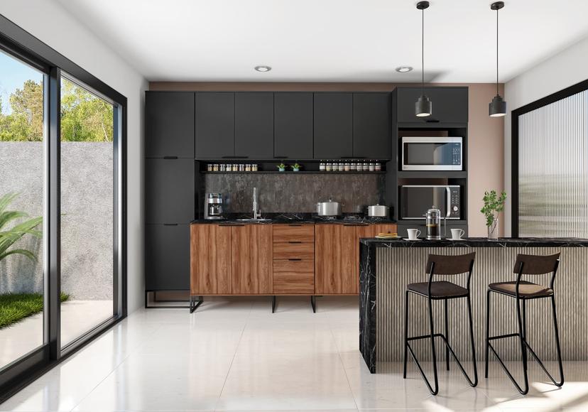 Os módulos da Cozinha Alpha unem versatilidade e criativadade, possibilitando diferentes montagens em ambientes diversos. Balcões são elementos que complementam a composição das cozinhas, contribuem na organização e resultam em mais espaço para armazenamento. Esse módulo tem a possibilidade de ser montado com o gaveteiro tanto do lado esquerdo quanto do direito, para o melhor aproveitamento do produto. Além disso, possui design que traduz a essência e modernidade do estilo industrial. Itens que compõe o balcão, como: puxadores em alumínio, pés em plástico/metálicos e matéria-prima em MDP, convertem-se em durabilidade e resistência para os produtos da linha de cozinhas.